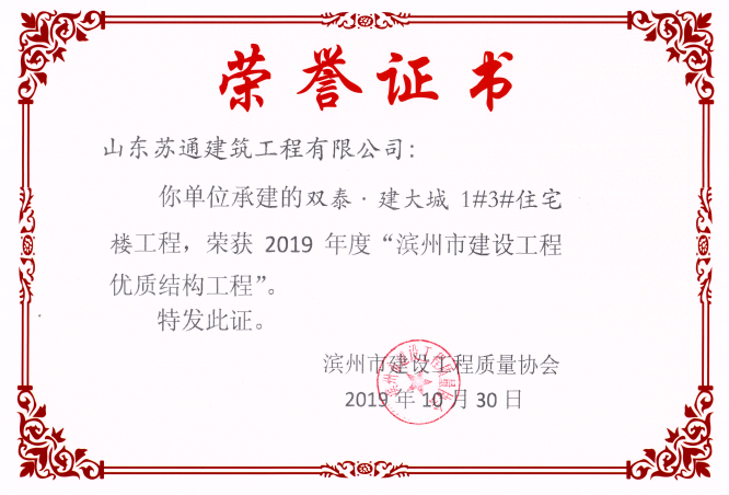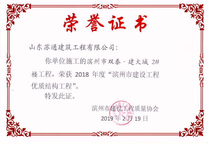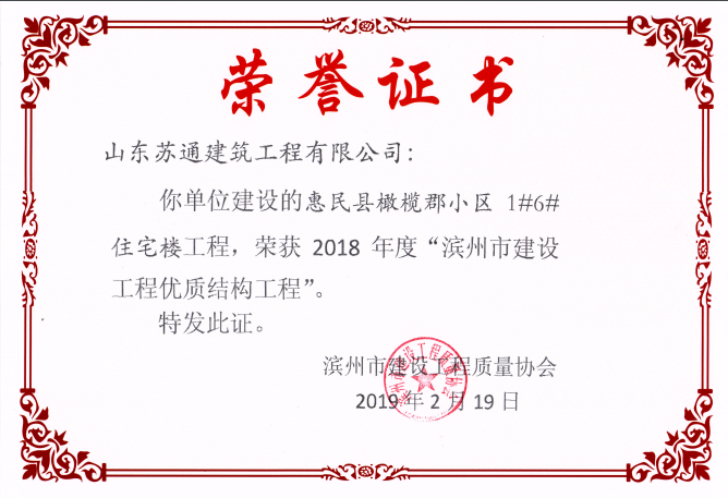 山東蘇通建筑工程有限公司,創(chuàng)建于2009年8月。目前擁有房屋建筑工程施工總承包壹級、市政公用工程施工總承包叁級、水利水電工程施工總承包叁級資質(zhì),同時還具有建筑裝修裝飾工程專業(yè)承包貳級、消防設(shè)施工程專業(yè)承包貳級、鋼結(jié)構(gòu)工程專業(yè)承包叁級、建筑機(jī)電安裝工程專業(yè)承包叁級等專業(yè)承包資質(zhì)。 公司總部坐落于山東省濱州市濱城區(qū)黃河十二路877號,現(xiàn)有辦公面積約2000平方米,機(jī)構(gòu)設(shè)黨支部工會辦公室、總經(jīng)理辦公室、綜合辦公室、工程管理部、經(jīng)營預(yù)算部、資產(chǎn)財務(wù)部、材料設(shè)備部、運行管理部、法律事務(wù)部等多個職能部門。公司管理體系已經(jīng)通過了GB/T 19001及GB/T 50430質(zhì)量管理體系、GB/T 24001環(huán)境管理體系(EMS)、GB/T 28001職業(yè)健康安全管理體系(OHSMS)等體系的認(rèn)證。 公司承建完工了濱州市建大教師之家、建大清怡苑、香格里拉水岸綠城住宅小區(qū)、雙泰建大城、曲阜崇德公館住宅小區(qū)、北海新區(qū)御景藍(lán)灣住宅小區(qū)、沾化德榮國際華城住宅小區(qū)、惠民橄欖郡住宅小區(qū)等工程項目,目前在建工程項目有:濱州市頤高國際電子商務(wù)產(chǎn)業(yè)園住宅小區(qū)項目、濱州市東盛國際項目、高新區(qū)建大中央華府住宅小區(qū)項目、濱州市融匯新里程住宅小區(qū)項目、濱州市建大秦皇壹號住宅小區(qū)項目、濱州市森林花...